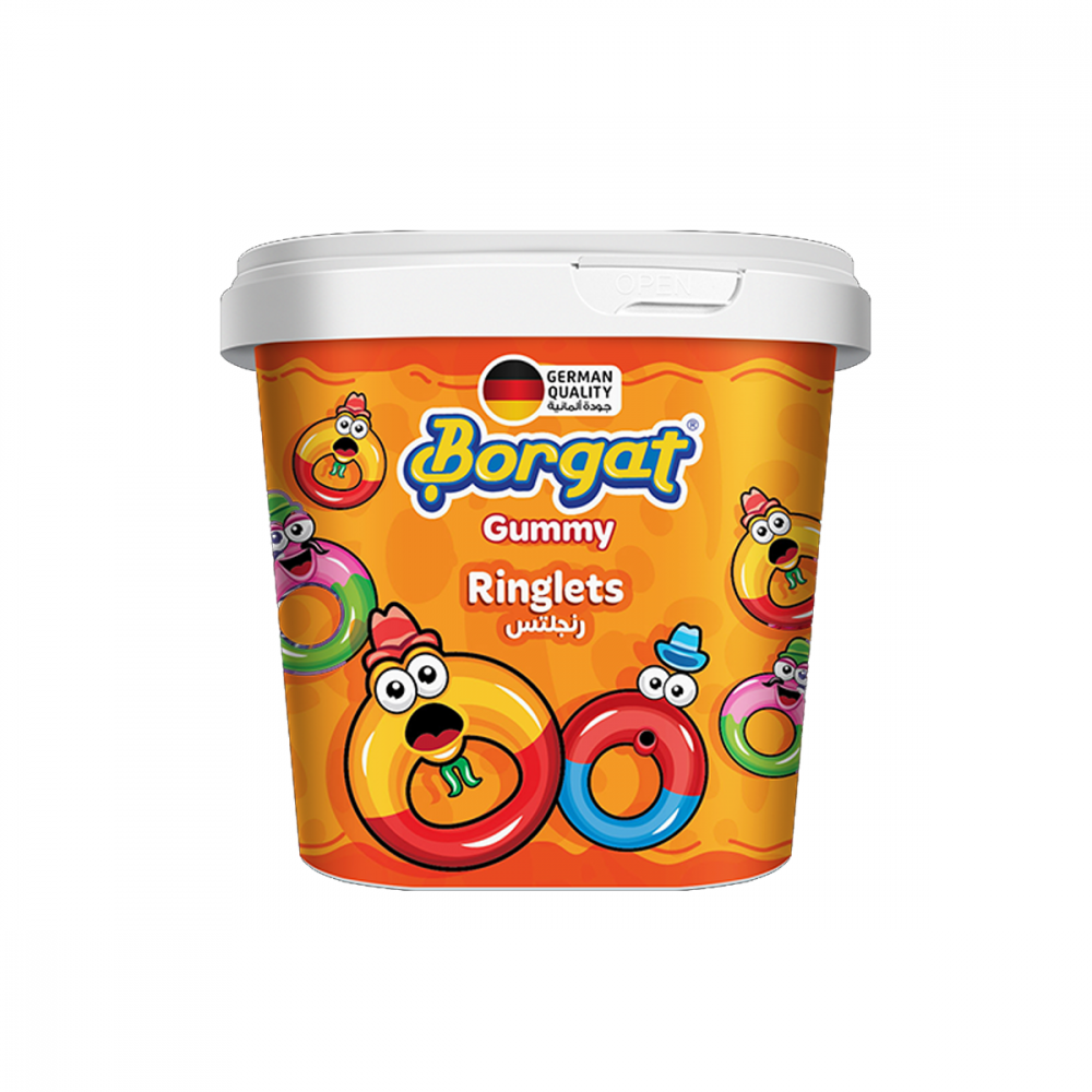 شراب الجلوكوز، سكر، جيلاتين بقري، منظمات حموضة (حمض الستريك إي330، حمض اللاكتيك إي270)، مادة مغلظة (البكتين)، نكهات مماثلة للطبيعة (تفاح، فراولة، ليمون، برتقال، عنب أسود)، ألوان طبيعية (كركمين إي100، كارمين إي120، ثاني أكسيد التيتانيوم إي171)، لون اصطناعي (بريلينت الأزرق إي133)، زيت النخيل، مادة مغلظة (شمع النحل إي901، شمع الكرنوبي إي903)